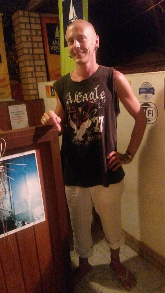 Eu conversei com ele em março deste ano, quando viajei pelo Nordeste. Ele trabalhava como recepcionista de um albergue na praia de Pipa, no Rio Grande do Norte.