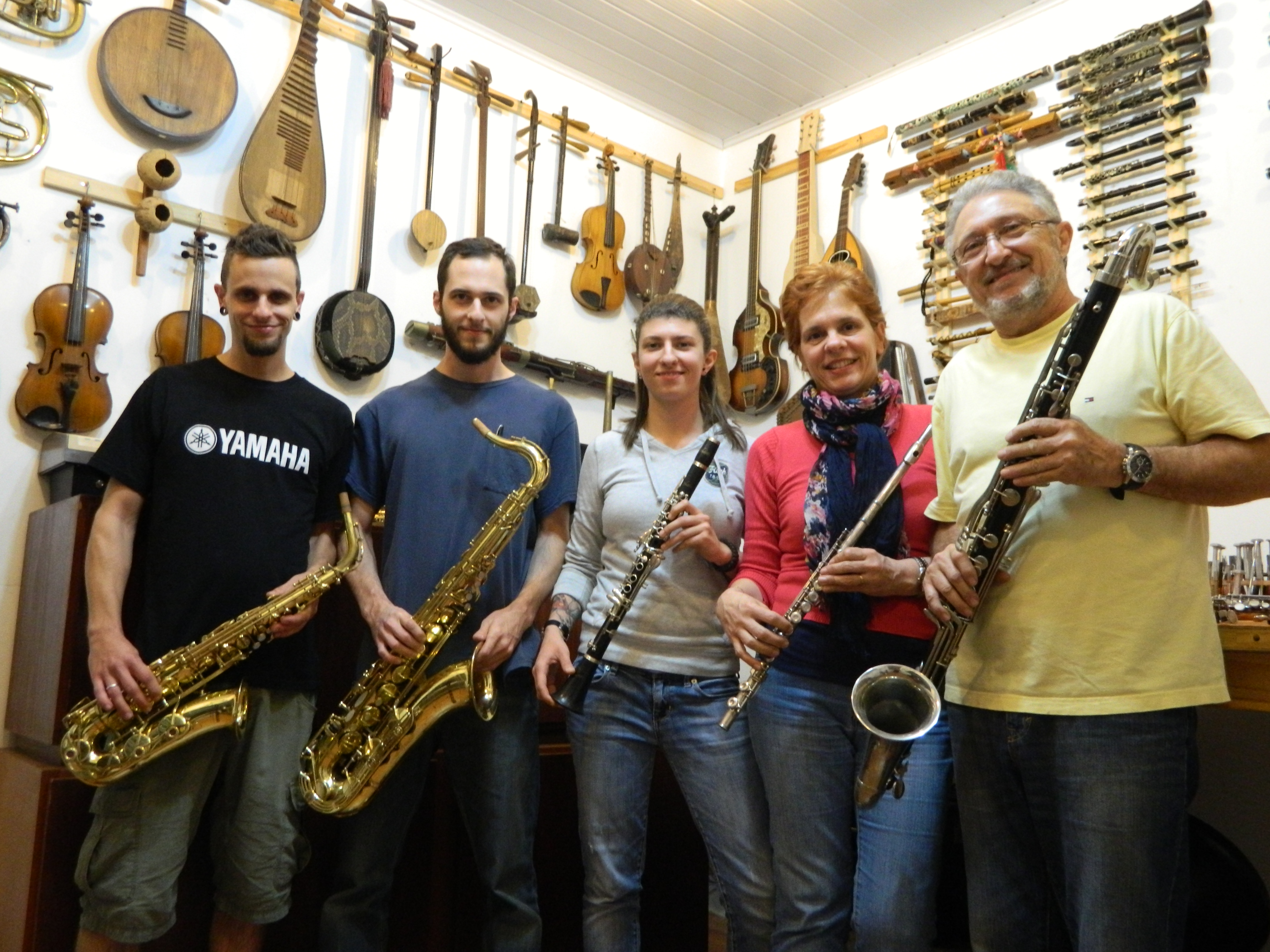 Trabalham ele, sua esposa, os dois filhos do casal e até um sobrinho. Eles reformam e restauram instrumentos como flautas, saxofones, trombones, oboés e clarinetes.